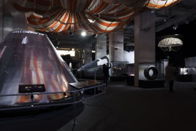Le sezioni successive raccontano invece la storia della cosiddetta “corsa allo Spazio”, quando alla fine della Seconda guerra mondiale l’Unione Sovietica e gli Stati Uniti iniziarono a competere nelle esplorazioni per dimostrare i loro progressi tecnologici, e naturalmente nella potenza dei loro razzi che potevano essere utilizzati per scopi meno pacifici di quelli scientifici. Un modello dello Sputnik, il primo satellite artificiale lanciato dall’URSS in orbita 60 anni fa, e il primo viaggio orbitale del cosmonauta sovietico Yuri Gagarin ricordano quanto gli Stati Uniti fossero inizialmente indietro nella competizione spaziale. Ma in pochi anni la NASA avrebbe recuperato, con i successi dei suoi programmi spaziali Mercury e Gemini, che gettarono le basi per l’ambizioso programma Apollo voluto dal presidente John Fitzgerald Kennedy per portare l’uomo sulla Luna. Quel progresso, che segnò la superiorità degli Stati Uniti nella “corsa allo Spazio”, avvenne nel 1969, ad appena 12 anni di distanza dalla messa in orbita dello Sputnik.