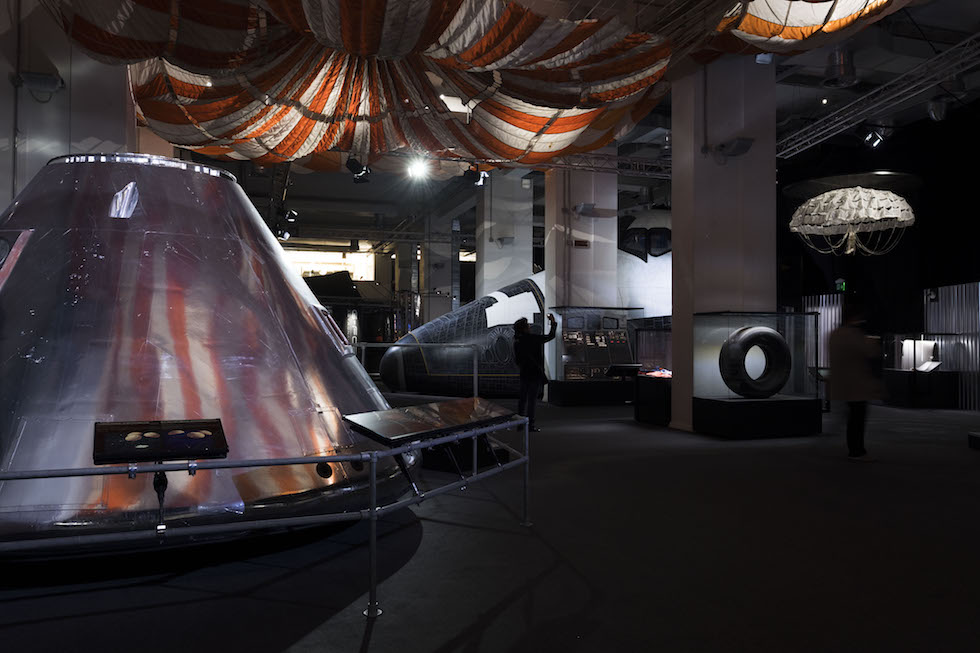 Per accedere agli ambienti della mostra si attraversa una riproduzione della passerella di metallo che gli astronauti delle missioni Apollo, tra gli anni Sessanta e Settanta, percorrevano a oltre 100 metri di altezza per entrare nel Modulo di Comando, collocato sulla sommità del razzo Saturno V, il più grande e potente mai costruito nella storia dell’uomo. La prima sezione racconta invece lo Spazio immaginato e sognato nei millenni prima delle esplorazioni spaziali della seconda metà del Novecento: dalle antiche osservazioni della volta celeste ai libri di fantascienza di Jules Verne, che avrebbero ispirato molti film dei primi anni del cinema.
