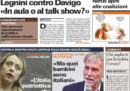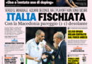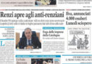 Ci sono molte notizie diverse in apertura sui quotidiani di oggi: Repubblica apre sulle parole del segretario del Partito Democratico Renzi di apertura nei confronti dei partiti di sinistra in vista delle prossime elezioni, il Corriere della Sera titola sulla decisione di un giudice federale brasiliano di rimettere in libertà Cesare Battisti dopo il suo arresto per il tentativo di fuga in Bolivia, Avvenire si occupa del Nobel per la pace all’ICAN, la Campagna internazionale contro le armi nucleari, e la Stampa apre sul piano della nuova proprietà dell’ILVA che prevederebbe oltre quattromila esuberi. Il Manifesto segue lo sciopero della fame a sostegno della legge sullo Ius soli, Libero, il Giornale e la Verità approfittano dell’indagine sul sindaco di Riace per criticare le politiche di accoglienza dei migranti, e il Fatto e il Dubbio commentano le critiche del vicepresidente del CSM Legnini alle presenze televisive dei magistrati. I quotidiani sportivi si occupano del deludente pareggio di ieri sera con la Macedonia dell’Italia, che non ha ancora raggiunto la qualificazione agli spareggi per l’accesso ai prossimi Mondiali di calcio.