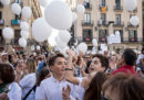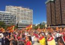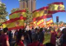 Una rossa e gialla organizzata dai filospagnoli, un'altra piena di bandiere bianche in favore del dialogo tra governo centrale e Catalogna
