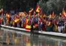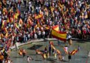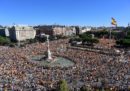 Oggi a Madrid ci sono state due grandi manifestazioni: una era contro l’indipendenza della Catalogna, organizzata dalla Fundación Denaes, un’organizzazione di orientamento politico di destra; l’altra chiedeva il dialogo tra il governo spagnolo e quello catalano ed è stata organizzata dalla piattaforma Parlem-Hablemos, creata da un gruppo di cittadini proprio in occasione della manifestazione (il nome affianca le parole catalana e spagnola per “parliamo”).