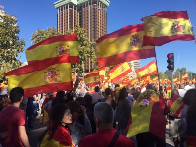 Alla manifestazione della Fundación Denaes, a cui hanno aderito centinaia di associazioni, tra cui l’ultracattolica Hazte Oír, hanno preso parte decine di migliaia di persone: 150mila secondo gli organizzatori, 50mila secondo il governo. I colori del corteo sono stati il giallo e il rosso delle bandiere spagnole sventolate dai manifestanti. Tra gli slogan cantati ci sono stati «Non ci ingannate, la Catalogna è Spagna» e «Siamo patrioti, non fascisti».