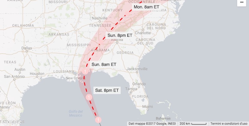 Gli stati degli Stati Uniti affacciati sul Golfo del Messico si stanno preparando all’arrivo di un nuovo urgano, l’uragano Nate, che fino a venerdì sera era classificato solo come tempesta tropicale. Giovedì Nate ha colpito i paesi del Centro America, dove ha causato alluvioni, frane e la morte di almeno 23 persone: undici in Nicaragua, otto in Costa Rica, tre in Honduras e una in El Salvador. Circa 400mila persone in Costa Rica sono rimaste senza acqua corrente a causa della tempesta. Secondo le previsioni dei meteorologi dovrebbe arrivare domenica a est New Orleans, la città della Louisiana in gran parte distrutta dall’uragano Katrina dodici anni fa; se la sua intensità non diminuirà nelle prossime ore, sarà il terzo uragano a colpire gli Stati Uniti nelle ultime sei settimane, dopo Harvey e Irma.