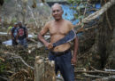 Uno dei modi più efficaci di raccontare per immagini la distruzione dell’uragano Maria a Porto Rico – e quindi uno dei più usati dai fotografi delle agenzie che si trovano sul posto – è ritrarre i portoricani all’interno delle loro case totalmente o parzialmente distrutte. È una scelta che viene fatta spesso quando succedono catastrofi come terremoti o uragani (qui potete vedere un recente lavoro di Reuters sul terremoto in Messico) perché permette di mostrarne le conseguenze su persone reali, in un modo che probabilmente colpisce più dei numeri che si leggono tra le notizie, e che sono comunque impressionanti: l’uragano Maria ha causato più di 40 morti e ha distrutto le abitazioni di almeno 11mila persone, e il paese è in grossa parte ancora senza acqua, cibo e energia elettrica, in una situazione peggiorata dalle precarie condizioni economiche dello stato.