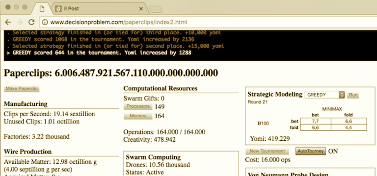 “Paperclips” è un gioco testuale apparentemente banale – almeno all’inizio, poi è intricatissimo – e dal quale è difficile staccarsi