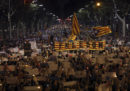 Ieri sera a Barcellona decine di migliaia di persone hanno protestato contro la carcerazione preventiva di due importanti leader catalani, Jordi Sánchez e Jordi Cuixart, capi rispettivamente dell’Assemblea Nazionale Catalana (ANC) e di Ómnium, le due più importanti organizzazioni indipendentiste catalane. I “due Jordi”, come sono spesso chiamati, sono in prigione da lunedì sera con l’accusa di sedizione, un reato previsto dal codice penale spagnolo che prevede pene molto alte per coloro che impediscono l’applicazione della legge con la forza o con metodi fuori dalla legge. Alla manifestazione, che si è concentrata soprattutto sulla Diagonal e sul Paseo de Grácia, hanno partecipato anche diversi esponenti dei partiti indipendentisti catalani, tra cui l’ex presidente Artur Mas, la deputata Anna Gabriel (della CUP, partito di sinistra radicale) e membri del governo guidato dal presidente Carles Puigdemont.