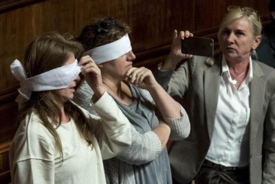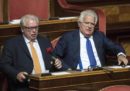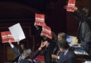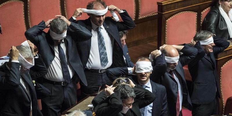 Il governo ha annunciato ieri in Senato che porrà la questione di fiducia sul Rosatellum, la nuova legge elettorale in discussione, causando le proteste colorite dell’opposizione. Non appena è stato fatto l’annuncio, alcuni senatori, in particolare dai banchi di Sinistra Italiana, hanno iniziato a scandire “Vergogna! Vergogna!”. La capogruppo Loredana De Petris ha occupato la sedia del presidente del Senato Pietro Grasso, che in quel momento non era presente. I Senatori del Movimento 5 Stelle si sono avvolti una benda bianca intorno agli occhi. Altri hanno alzato cartelli con la scritta “fiducia zero”. I capigruppo di MDP, infine, sono andati al Quirinale per comunicare al presidente della Repubblica che il loro gruppo non fa più parte della maggioranza (una cosa, in realtà, che avevano già annunciato lo scorso 4 ottobre).