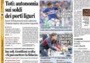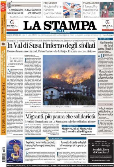Ci sono notizie diverse in apertura sui giornali di oggi: molti si occupano della conclusione della conferenza programmatica del Partito Democratico, con l’intervento del segretario Matteo Renzi che ha indicato la possibilità di alleanze con i partiti a sinistra in vista delle prossime elezioni. La Stampa apre sugli incendi in val di Susa, Repubblica ipotizza una mediazione vaticana per le tensioni fra Corea del Nord e Stati Uniti, e i quotidiani sportivi titolano sui risultati della domenica calcistica, con il Napoli che torna da solo in testa alla classifica battendo il Sassuolo.