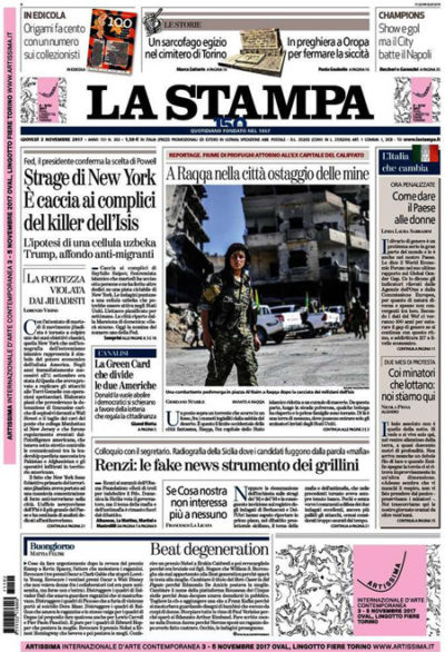 Le prime pagine di giovedì 2 novembre 2017