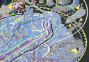 Andrew DeGraff è un insegnante (di arte e design, a Brooklyn, New York) e illustratore che ha collaborato con importanti aziende (Kellogg’s, Visa, Gap) e giornali (Esquire, New York Times e Slate, tra gli altri). Un paio di anni fa ha pubblicato un libro di mappe disegnate a mano e ispirate ai grandi classici della letteratura e ai libri per bambini, come l’Odissea, Orgoglio e pregiudizio, Il giro del mondo in 80 giorni, e Le avventure di Huckleberry Finn. Ora ha fatto lo stesso con le mappe dei film. In Cinemaps ci sono mappe anche molto intricate e ispirate a 35 famosi film, a volte disegnate da DeGraff e commentate dal critico cinematografico A. D. Jameson. Tra i film mappati qui sotto: Shining, Indiana Jones e il tempio maledetto, Lo squalo, Ritorno al futuro e quelli della saga di Star Wars.