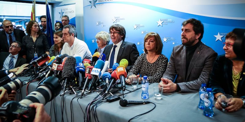 Domenica mattina l’ex presidente della Catalogna Carles Puigdemont e gli altri quattro ex ministri catalani che erano a Bruxelles, in Belgio, si sono consegnati alla polizia in seguito al mandato d’arresto internazionale emesso venerdì dalla Audiencia Nacional, un’alta corte spagnola. I ministri sono Antoni Comín (Sanità), Clara Ponsatí (Istruzione), Meritxell Serret (Agricoltura) e Lluís Puig (Cultura). L’arresto di Puigdemont e degli ex ministri, considerati responsabili della dichiarazione d’indipendenza catalana, giudicata illegale dalla Spagna, era stato chiesto domenica mattina dalla procura nazionale belga, che fin dall’inizio aveva detto che avrebbe collaborato con le autorità spagnole.