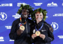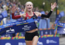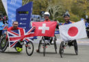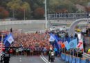Ieri più di 50 mila persone hanno partecipato alla 47esima edizione della maratona di New York, circondati da oltre due milioni e mezzo di spettatori che hanno attorniato il percorso nei cinque grandi distretti della città. La grossa notizia è che per la prima volta in quarant’anni la maratona è stata vinta da una donna statunitense, Shalane Flanagan: ci ha messo due ore, 26 minuti e 53 secondi, battendo la keniana Mary Keitany, che aveva vinto le ultime tre edizioni, per un minuto e un secondo. L’ultima americana ad averla vinta era stata Miki Gorman nel 1977. Tra gli uomini ha vinto il keniano Geoffrey Kamworor, in due ore, 10 minuti e 53 secondi, mentre nella gara in carrozzina hanno vinto gli svizzeri Manuela Schar e Marcel Hug.