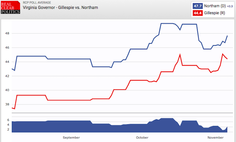 McAuliffe è stato un governatore popolare e in campagna elettorale Northam non ha combinato disastri, ma la corsa è più in bilico di quanto speravano i Democratici. Secondo una media dei sondaggi elaborata da Real Clear Politics, Northam è avanti a Gillespie di poco più di 3 punti: ed è un distacco che è diminuito molto nelle ultime settimane. Alle elezioni presidenziali del 2016 Hillary Clinton andò molto bene in Virginia, staccando Trump di 5 punti.