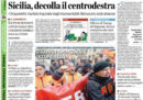 La vittoria del candidato del centrodestra Musumeci nelle elezioni regionali siciliane è la notizia in apertura su tutti i quotidiani di oggi, che commentano il successo del centrodestra unito e le possibili conseguenze sugli accordi in vista delle prossime elezioni politiche, e la decisione del candidato premier del Movimento 5 Stelle Di Maio di non partecipare al confronto in tv previsto per stasera con Matteo Renzi. Solo il Tempo fa una scelta diversa e titola sulle elezioni di Ostia, con il buon risultato di CasaPound nelle elezioni per il Municipio X di Roma, mentre i quotidiani sportivi cominciano a parlare delle partite fra Italia e Svezia di venerdì e lunedì prossimi per la qualificazione ai mondiali in Russia.