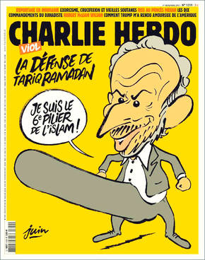 Infine: la procura di Parigi ha aperto un’inchiesta perché il direttore e i redattori di Charlie Hebdo, il settimanale satirico francese colpito da un attacco terroristico nel 2015, hanno ricevuto delle minacce di morte a causa di una vignetta che mostra Tariq Ramadan con il pene in erezione mentre dice di essere «il sesto pilastro dell’Islam» (i cinque pilastri dell’Islam sono gli obblighi fondamentali previsti dalla religione musulmana). Il titolo è: «Stupro, la difesa di Tariq Ramadan». Il direttore Riss ha parlato un clima «pesante» affermando che sapere se le minacce siano serie o meno è sempre difficile: «Ma per principio le prendiamo sul serio e sporgiamo denuncia».