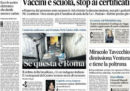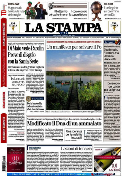 Ci sono molte notizie diverse in apertura sui quotidiani di oggi: il Corriere della Sera titola sulla risposta del presidente del Consiglio Gentiloni alle riserve espresse dall’Unione Europea sui conti pubblici italiani, Repubblica ipotizza che il voto al Senato sulla legge sullo ius soli potrebbe essere il primo passo per un accordo elettorale fra i partiti di centrosinistra, Avvenire apre sulla cura negli Stati Uniti di un paziente con una malattia genetica al quale è stato modificato il DNA, e il Manifesto segue anche oggi le critiche dell’ONU agli accordi con la Libia sui migranti. La Stampa apre sul viaggio negli Stati Uniti del candidato premier per il Movimento 5 Stelle Di Maio, il Giornale si occupa di tasse, e i quotidiani sportivi commentano il licenziamento dell’allenatore della nazionale di calcio Ventura e l’intenzione del presidente della Federazione Tavecchio di rimanere al suo posto.