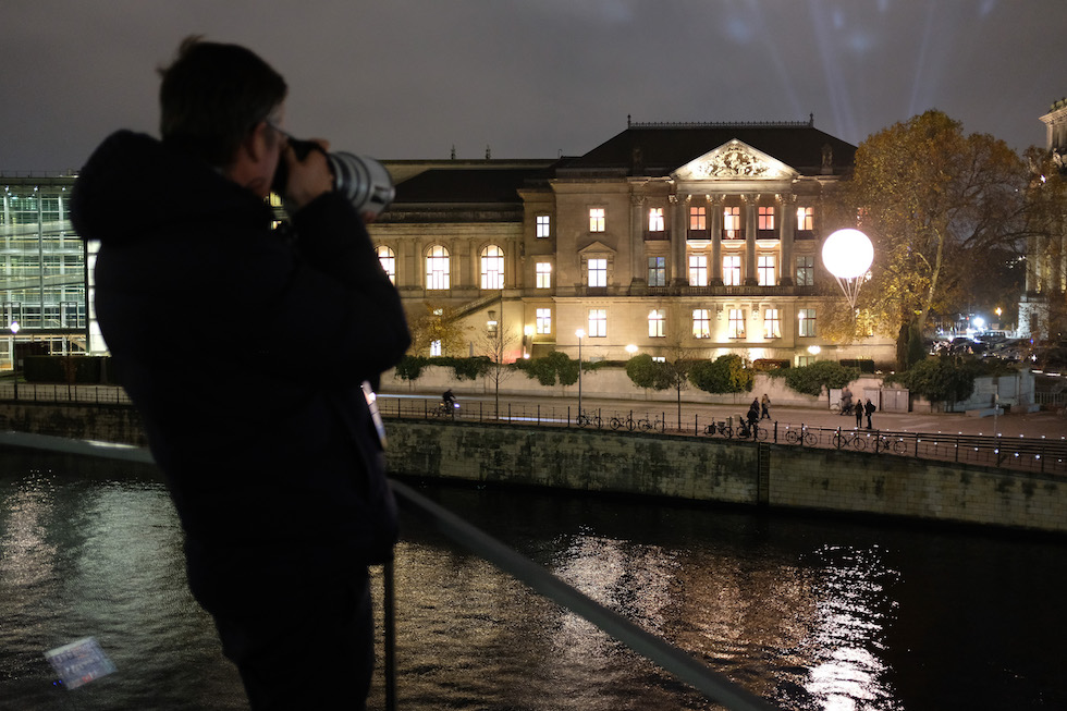 Un fotografo punta l’obiettivo sul palazzo del Parlamentarische Gesellschaft nei pressi del Reichstag, la sede del Parlamento tedesco, dove erano in corso i colloqui per formare un nuovo governo, Berlino, 16 novembre 2017
