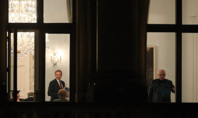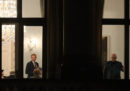 Per tutta la notte fotografi e giornalisti hanno atteso davanti al palazzo del Reichstag, la sede del Parlamento, che arrivasse qualche notizia sull’esito dei colloqui. I fotografi si sono industriati per raccontare cosa stava succedendo e offrire qualche immagine significativa, e alcuni hanno puntato i teleobiettivi sulla facciata del palazzo e scattato qualche foto ai leader che apparivano dalle finestre: si vedono seduti attorno al tavolo dei colloqui, impegnati a gesticolare in modo rassicurante mentre i camerieri sparecchiano la cena, e poi c’è la tensione sul viso di Merkel.