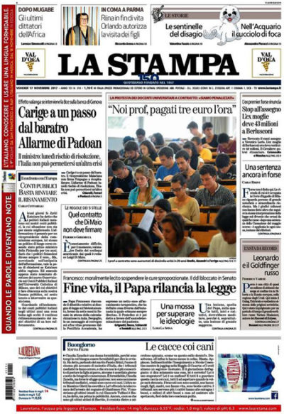 Le prime pagine di venerdì 17 novembre 2017