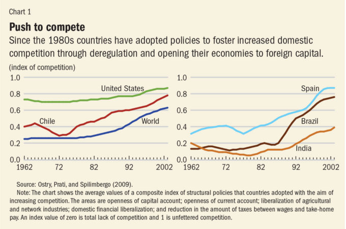Ma i tre ricercatori dicono anche un’altra cosa: quando la sinistra accusa il neoliberismo di essere diventato un pensiero egemone nella nostra società ha almeno in parte ragione. Negli ultimi decenni i due assiomi fondamentali del liberismo, apertura alla concorrenza e ritiro dello stato dall’economia, hanno conosciuto una grandissima diffusione. Forse non è proprio “tutta colpa del neoliberismo”, ma quello che è accaduto a partire dagli anni Ottanta fino alla Grande crisi porta incisi i suoi segni, nel bene e nel male.