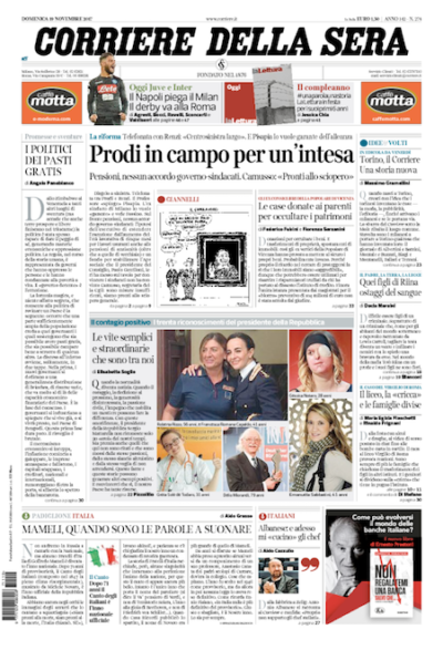 Stamattina i quotidiani aprono soprattutto sulle manovre interne al centrosinistra, dove sembra che il PD e Giuliano Pisapia siano più vicini ad un’alleanza. Una telefonata di Romano Prodi a Matteo Renzi sul tema è finita addirittura in prima pagina. Ci sono pochissime notizie di esteri. Nei boxini compare il ballottaggio alle comunali di Ostia, che si tiene oggi. I giornali sportivi parlano soprattutto della vittoria della Roma nel derby contro la Lazio.