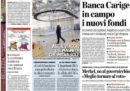 Molti giornali di oggi aprono sulla scelta da parte dell’Unione Europea della città che ospiterà l’Agenzia Europea per i Medicinali, che dovrà lasciare Londra a causa di Brexit: la scelta di Amsterdam è arrivata con un sorteggio, dopo la parità con Milano nel voto finale. Altri giornali seguono la situazione politica in Germania, dove sembrano essere fallite definitivamente le trattative per la formazione del nuovo governo; i liberali hanno rifiutato di farne parte, e Angela Merkel si è detta favorevole a tornare a votare piuttosto che formare un governo di minoranza. Avvenire titola sull’accoglienza dei migranti da parte della Chiesa, il Giornale si occupa degli ascolti della trasmissione di Fazio su Rai Uno, e i giornali sportivi commentano le dimissioni di Tavecchio da presidente della FIGC.