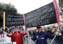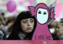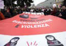 Oggi a Roma si è svolta la manifestazione del movimento femminista Non una di meno organizzata in occasione della Giornata internazionale per l’eliminazione della violenza contro le donne, che esiste dal 1999 ed è, per l’appunto, il 25 novembre. Hanno partecipato alla manifestazione alcune migliaia di donne e uomini (soprattutto donne) da tutta Italia e di molte età diverse. Il corteo è cominciato in piazza della Repubblica, vicino alla stazione Termini, diretto a piazza di Porta San Giovanni. Tra i messaggi che si sono letti su striscioni, cartelli e palloncini ci sono: «Sul mio corpo decido io», «Sorella, io ti credo», «Siamo il grido di quelle che non hanno voce», «La violenza è l’ultimo rifugio del codardo», «#quellavoltache» e «Non dite alle donne come vestirsi, insegnate agli uomini a non stuprare».