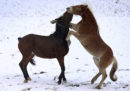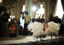 Uno degli animali protagonisti di questa settimana è stato il tacchino, visto che negli Stati Uniti si è festeggiato il giorno del Ringraziamento e come ogni anno sono stati mangiati i piatti tradizionali che consistono in zucca, mais, patate e soprattutto, per l’appunto, il tacchino ripieno. Non a tutti è toccata questa sorte: i due esemplari Drumstick e Wishbone sono stati graziati dal presidente Donald Trump, e per questo saranno trasferiti all’università Virginia Tech dove passeranno il resto della loro vita insieme ai tacchini graziati gli anni precedenti. Altri tacchini, britannici in questo caso, vengono allevati nella fattoria di King’s Coppice e sorvegliati da alpaca. Ci sono poi degli sguardi molto interessanti, tra le foto di animali da vedere questa settimana: di una giraffa, legittimata a farlo dall’alto in basso, di un lupo artico piuttosto misterioso e di un loris, che è probabilmente la cosa più pucciosa che vedrete oggi.
