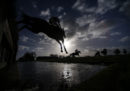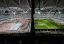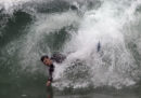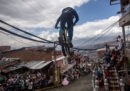 Nella chiesa sconsacrata di San Paolo Converso di Milano l’artista statunitense Asad Raza ha fatto allestire la sua ultima installazione: un campo da tennis dove si potrà giocare gratuitamente fino al 16 dicembre. Le foto, manco a dirlo, sono notevoli. Sulla spiaggia di Rio è invece stato fotografato un ragazzo che scivola sulle onde senza tavola: non è un surfista che l’ha persa, ma uno che sta facendo bodysurfing, uno sport in cui la tavola non serve. Infine, tra le migliori foto di sport della settimana, ce n’è una scattata per le strade di Medellin, in Colombia, dove c’è stata una gara di downhill: è una disciplina del mountain biking e che di solito si svolge nei boschi o in posti disabitati, percorrendo lunghe discese solitamente molto ripide e tecniche.