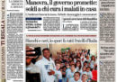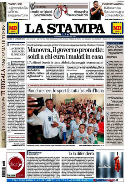 Ci sono notizie diverse in apertura sui giornali di oggi: alcuni si occupano della manovra economica e della norma approvata in Commissione al Senato per istituire un fondo per aiutare le famiglie che assistono a casa malati gravi, altri titolano sulla possibile candidatura del generale dei carabinieri Gallitelli a premier per il centrodestra, come ipotizzato da Berlusconi in un’intervista televisiva, sulla quale sembra non ci fosse un accordo con gli altri partiti di centrodestra. Altri ancora aprono sulle fake news, sulle quali si è sviluppata una polemica elettorale fra Partito Democratico e Movimento 5 Stelle, mentre il Manifesto titola sui salvataggi di migranti nel Mediterraneo, con una ONG che accusa di essere stata bloccata in un’operazione di soccorso, e i quotidiani sportivi si occupano del licenziamento dell’allenatore del Milan Montella, sostituito da Gattuso.