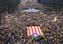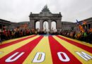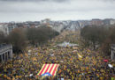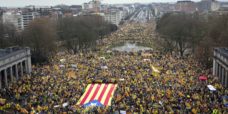 Oggi a Bruxelles, in Belgio, migliaia di persone hanno partecipato a una manifestazione per l’indipendenza della Catalogna e in sostegno del leader catalano Carles Puigdemont e degli altri quattro ministri del suo governo che come lui sono scappati in Belgio dopo la dichiarazione di indipendenza unilaterale della Catalogna, considerata illegale dalla Spagna.