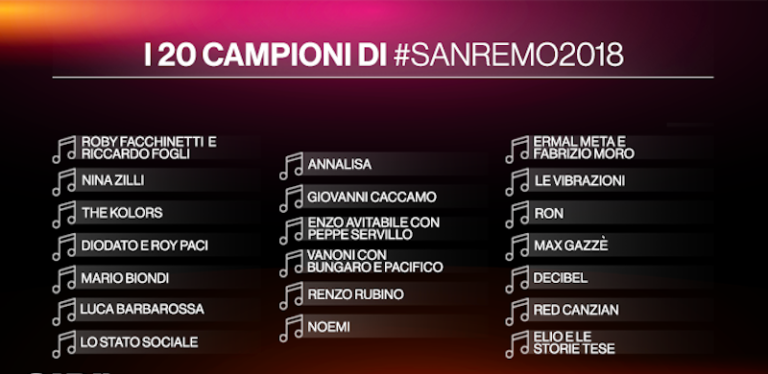 Sanremo 2018: i nomi dei 20 cantanti in gara