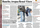Quasi tutti i giornali di oggi si occupano in apertura dell’audizione alla commissione parlamentare sulle banche del governatore della Banca d’Italia Visco, che ha detto di aver parlato di Banca Etruria con l’allora presidente del Consiglio Renzi ma di non aver ricevuto pressioni né da lui né da Maria Elena Boschi. Il Tempo fa il funerale a Spelacchio, l’albero di Natale messo dal comune di Roma in piazza Venezia, il Giornale titola sull’annuncio del sindaco di Roma Raggi di non volersi ricandidare al termine del suo mandato, e Avvenire apre sulle parole del presidente della Repubblica Mattarella, che chiede ai partiti maggiore responsabilità in vista delle elezioni.