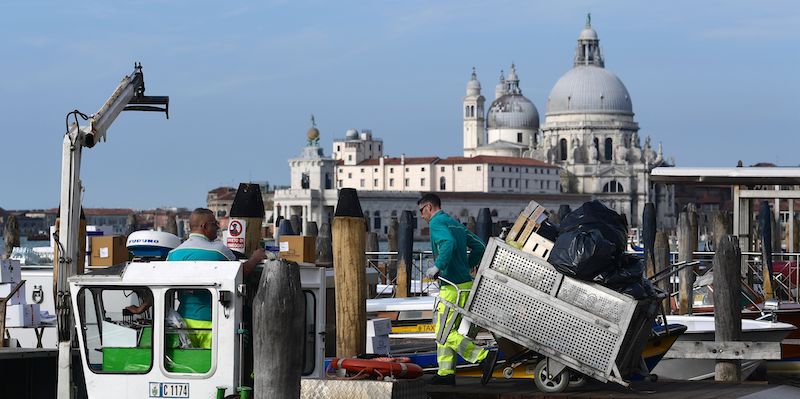 Uno dei principali problemi di Venezia è la raccolta dei rifiuti. In una città così particolare, formata da un groviglio di canali, calli strette e spesso affollate durante il giorno, e dove gli unici mezzi di trasporto permessi sono le imbarcazioni, l’esposizione e la raccolta dei rifiuti non può che essere lenta e macchinosa, con tutti i disagi che ne conseguono. Per di più, l’enorme flusso di turisti in tutti i mesi dell’anno fa sì che Venezia produca più del doppio della media dei rifiuti pro capite delle altre principali città del Veneto e – contando anche la municipalità di Mestre – più di ogni altra città italiana sopra i 200.000 abitanti, come si legge nel rapporto annuale dell’Istituto superiore per la protezione e la ricerca ambientale (ISPRA).