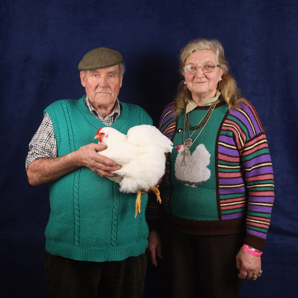 Secondo Scarff è un’esperienza piacevole anche perché i proprietari degli uccelli sono ben disposti verso la stampa e i fotografi. Anni fa gli capitò di fotografare una coppia di anziani che indossavano un maglione e un gilet di lana verde: su quello della donna era ricamato il disegno di una gallina bianca, molto simile a quella vera che il marito teneva in braccio. La foto fu pubblicata insieme ad altre sul Guardian e quando qualche anno dopo Scarff incontrò di nuovo la coppia alla fiera, scoprì che l’avevano incorniciata e la tenevano appesa.