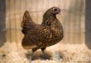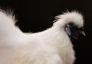 Una gallina Silkie bianca fotografata durante la fiera del 2017 a Telford, in Regno Unito (Oli Scarff/AFP/Getty Images)