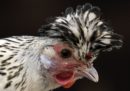 Una gallina ciuffata polacca fotografata durante la fiera del 2017 a Telford, in Regno Unito (Oli Scarff/AFP/Getty Images)