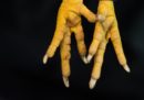 Le zampe di una gallina Pencilled Wyandotte fotografate durante la fiera del 2017 a Telford, in Regno Unito (Oli Scarff/AFP/Getty Images)