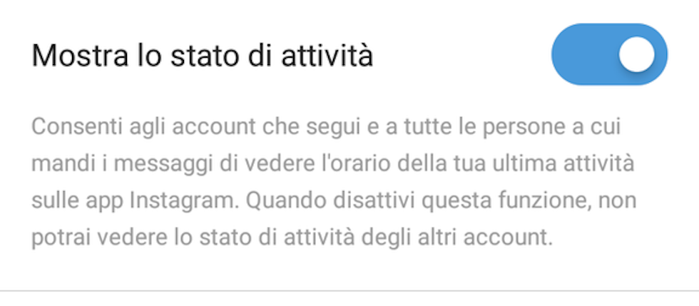 La nuova funzione – che è molto simile a quella da tempo disponibile su Messenger e WhatsApp, le due più popolari app di messaggistica che come Instagram sono di proprietà di Facebook – è stata attivata su Instagram per tutti gli utenti a partire da oggi, ma può essere disattivata. È importante comunque capire che su Instagram lo “stato di attività” di un utente è visibile solo alle persone che quell’utente segue e con cui ha scambiato messaggi diretti. Quindi: voi vedete l’ultima volta in cui sono state online le persone che vi seguono e con cui avete messaggiato, ma non potete sapere quando è stato online un utente che non vi segue.