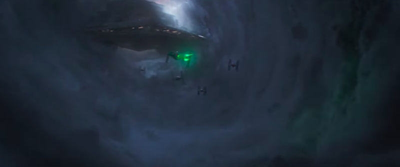 In una delle scene finali del trailer, prima di quella col mostro gigante, vediamo il Millennium Falcon inseguito da un incrociatore che sembra uscire da una specie di vortice. Potrebbe essere un riferimento alla “rotta di Kessel” che Han Solo si vanta di aver percorso in 12 parsec in un paio di scene della saga. Gli appassionati si sono chiesti per anni cosa fosse la rotta di Kessel e perché Han usasse una misura di lunghezza – il parsec – per vantarsi di aver percorso velocemente una certa strada. Il nuovo film potrebbe contenere la risposta a queste domande: Ron Howard ha rivelato che nel film si parlerà fra le altre cose delle miniere sul pianeta di Kessel.