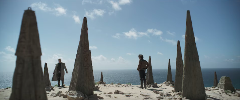 Nella scena successiva viene mostrato un nuovo personaggio, interpretato da Woody Harrelson. Sta cercando di convincere Han a entrare nella sua gang su un bizzarro promontorio. Da quel poco che sappiamo il personaggio di Harrelson si chiama Beckett e dovrebbe essere una specie di figura paterna.