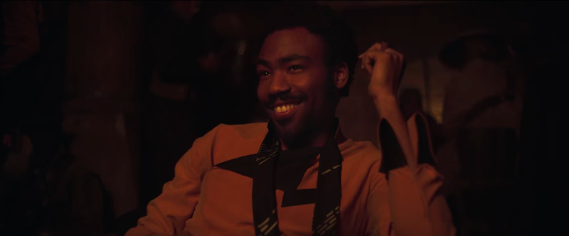Vediamo anche uno scorcio di Lando Carlissian, uno dei personaggi secondari più famosi della trilogia originale, che nel nuovo film è interpretato da Donald Glover (lo avete visto in Atlanta o Community, e ascoltato come Childish Gambino). Dai film usciti al cinema non sappiamo molto del suo passato, a parte che a un certo punto perse il Millennium Falcon scommettendo con Han Solo.