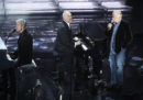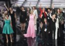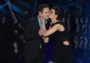 Anche Michelle Hunziker ha cantato, prima da sola e poi con un gruppo di donne che si sono alzate dal pubblico in una specie di flashmob. È cominciato tutto quando una donna ha interrotto Hunziker che stava cantando “I maschi” e poi “Bello e impossibile” di Gianna Nannini dicendo: «È l’unica donna sul palco in mezzo a tanti uomini, un momento ha per sé, per cantare una canzone, e cosa fa? Mi sceglie “I maschi”?». Insieme alle donne Hunziker ha fatto un medley di varie canzoni italiane che parlano di donne, come “Viva la mamma” di Edoardo Bennato, “La donna cannone” di Francesco De Gregori e “Quello che le donne non dicono” di Fiorella Mannoia, quella che fa «siamo così, dolcemente complicate». Alla fine di questo momento Hunziker ha invitato uomini e donne insieme a combattere «questa battaglia», anche se non è stato chiaro se si riferisse alla lotta alla violenza sulle donne o alla loro rappresentazione in TV. L’intera esibizione si può rivedere qui.