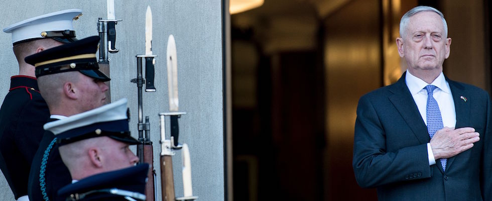 Il segretario della Difesa americano James Mattis a Washington, prima di un incontro con il primo ministro libico Fayez al Serraj (BRENDAN SMIALOWSKI/AFP/Getty Images)