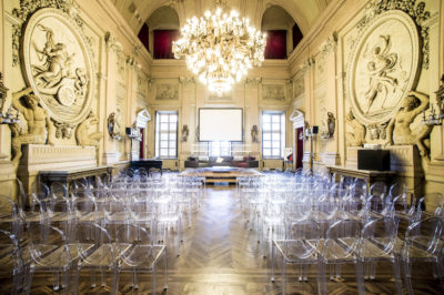 Come si vede nelle fotografie, il Circolo dei lettori si trova in un edificio antico: al primo piano di Palazzo Graneri della Roccia, costruito tra il 1683 e il 1702 su un progetto di Giovanni Francesco Baroncelli, assistente di Guarino Guarini. Lo spazio messo a disposizione di tutti è grande più di mille metri quadrati e occupa cinque sale, oltre al bar. I grandi lampadari, i soffitti stuccati, le cornici dorate e la carta da parati d’altri tempi, possono dare l’impressione che sia un luogo in cui andare vestiti eleganti e celebrare la solenne maestà della letteratura; ma il clima generale, la presenza di giovani che leggono, studiano o prendono un aperitivo sul lungo tavolo all’ingresso (o meglio nella Galleria), sovvertono lo scenario, insieme alla grande varietà dei temi e dei libri discussi.