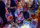 Un mercato pieno di decorazioni per il Capodanno nella città vecchia di Hanoi, in Vietnam, 14 febbraio 2018