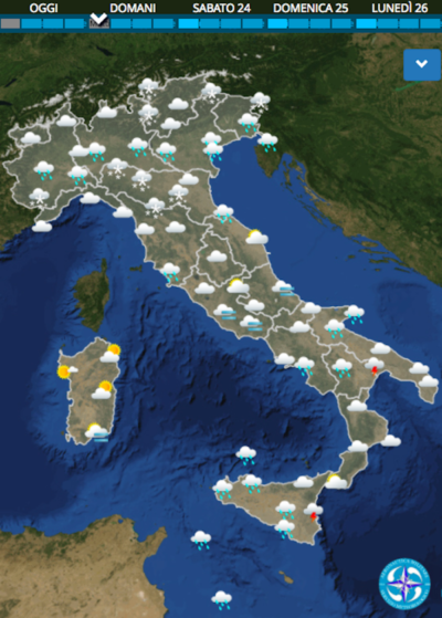 Informazioni elaborate dal Servizio Meteorologico dell’Aeronautica Militare e pubblicate sul sito www.meteoam.it