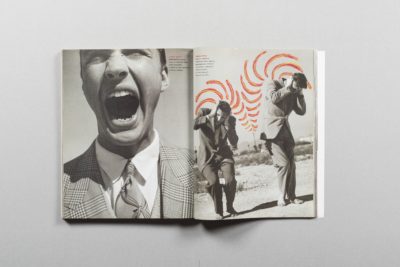 La copertina e il retrocopertina del libro di Marsilio dedicato alla mostra. Entrambe le foto sono state scattate da Oliviero Toscani per il servizio Unilook, pubblicato nel numero 15 di L’Uomo Vogue, dicembre 1971-gennaio 1972