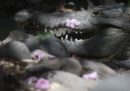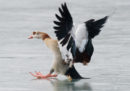 Gli animali che meritavano di essere fotografati in settimana si dividono in due categorie: quelli perfettamente a loro agio nell’ambiente attorno, e quelli fuori posto. I cigni di un lago in Lituania, circondati da rami innevati, sono da cartolina, la neofocena Kokoro (scoprite da voi cos’è) sembra sorridere per la gioia, un cane pastore fa placido il suo dovere con il gregge, mentre un gufo e una tartaruga sono mimetizzati che quasi non si vedono. Non se la passano così bene un elefante e un panda a testa in giù, il piccione che ha fatto un’invasione di campo durante una partita di football australiano, e un’oca egiziana che atterra goffamente su un lago ghiacciato a Hannover. E poi ci sono quelli che sanno stare al mondo, ovunque li si metta: una mucca in posa a un concorso di bellezza e un fascinoso coccodrillo con un fiorellino tra le fauci.