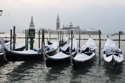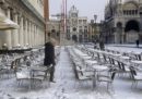 In questi giorni in tutta Italia ed Europa fa un gran freddo a causa di una corrente d’aria gelida, il Buran: dopo Roma, Napoli, e altre città italiane, stanotte ha nevicato anche a Venezia: sono caduti circa 5 centimetri di neve, senza che provocassero problemi nei trasporti, ma quanto basta per fare arrivare foto di piazza San Marco, gondole e tavolini coperti di neve.
